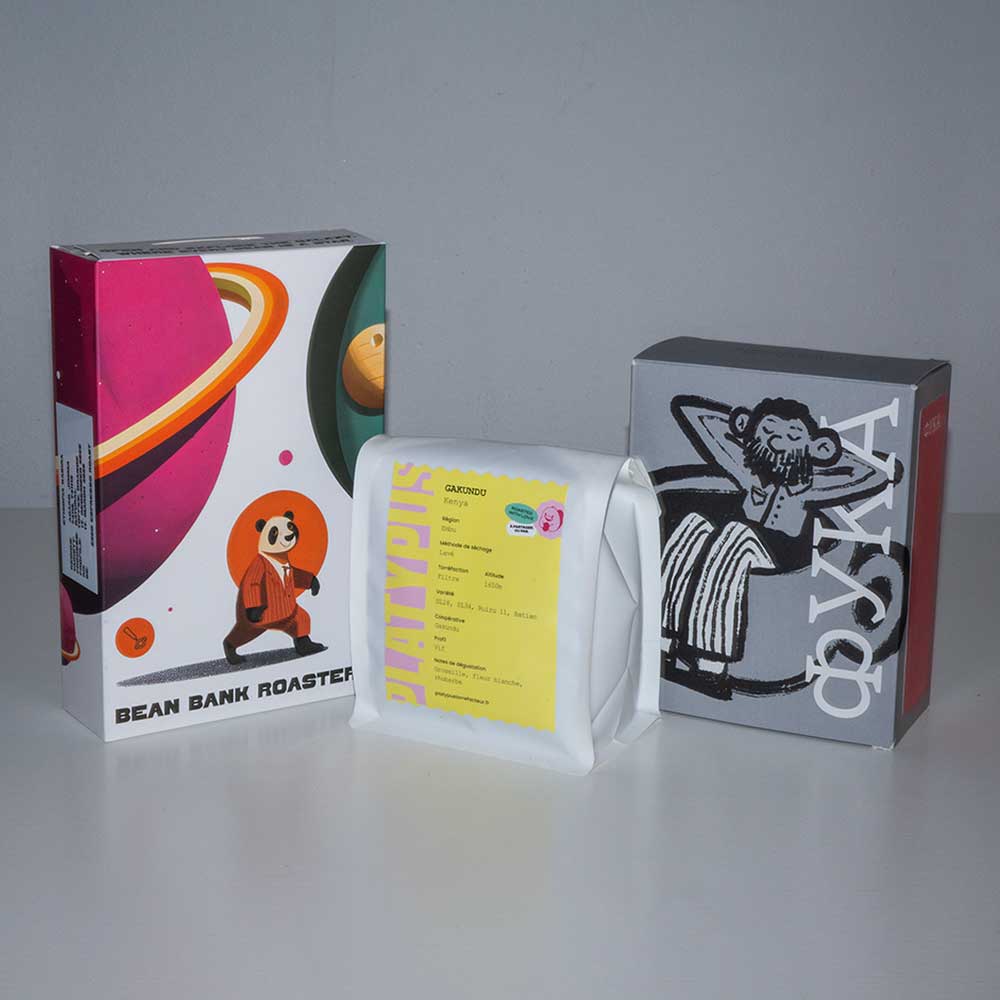 5 bags with 250g of coffee from our three roasters